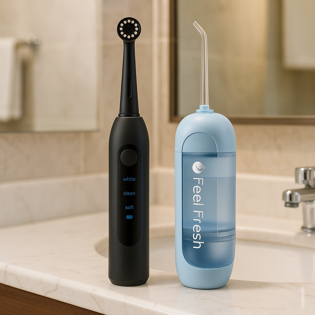 Get a Free Orbit™ Electric Toothbrush (worth $49.90) with every purchase of the AquaJet™ Water Flosser — our most powerful duo for daily freshness and confidence.