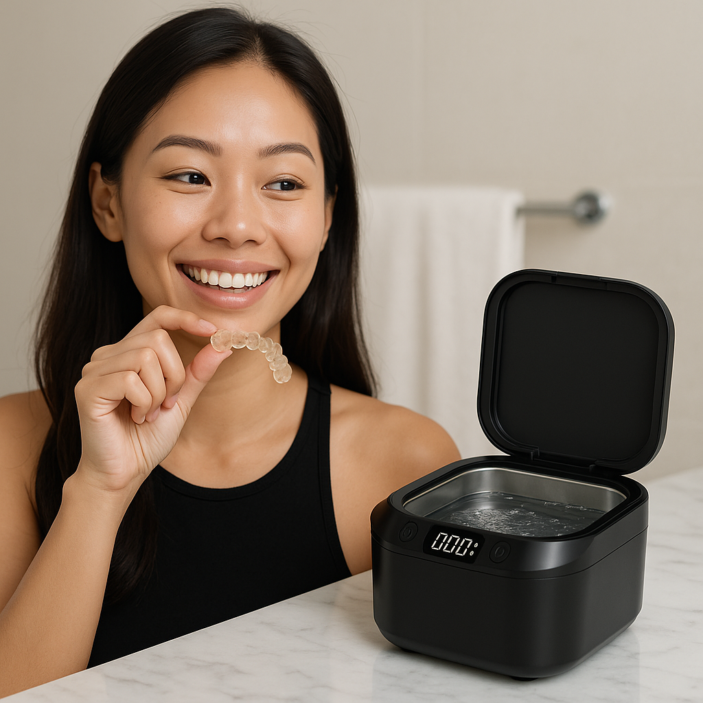 Most aligner users face yellow stains or odour — brushing and soaking just don’t work.